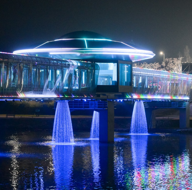 우주인이 착륙한 다리로, 환상적인 야간경관과 순천만습지의 생명 에너지를 미디어로 담아냅니다.