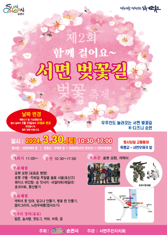 ※ 개화시기 및 기상영향으로 행사 날짜가 3월 23일에서 30일로 변경되었습니다. 많은 양해 바랍니다.